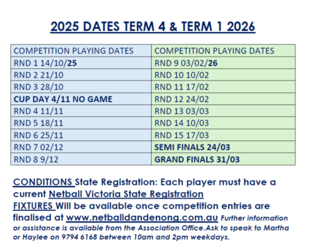The Dandenong & District Netball Association is excited to announce the details for the upcoming junior netball season.